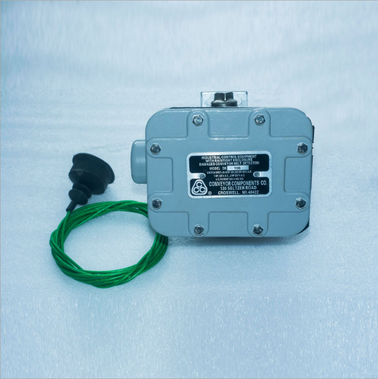 DB-100,TM-SLK-2D型撕裂開(kāi)關(guān)在皮帶出現(xiàn)撕裂,戳破,鉸接處損壞或銳利物凸出皮帶時(shí),能給監(jiān)視人員提供報(bào)警信號(hào)或關(guān)掉輸送機(jī)。