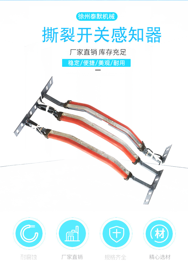 在皮帶出現(xiàn)由于撕裂、戳破、絞結(jié)處損壞或鋒利物凸出皮帶時,撕裂開關(guān)能給監(jiān)視人員提供聯(lián)鎖信號或關(guān)掉輸送機,以防止造成更大的損失。